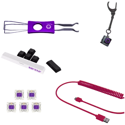 Пернетақтаға сәйкес стильде қосалқы 6 перне, ауыстырмалы қосқышы мен пернеқапты бар кілттұтқыш, қосымша 5 қосқыш, тазалау щеткасы, әмбебап ауыстырғыш/пернеқап алғыш, екі қол жылытқыш, үстелге арналған стақан қойғыш және тасымалдауға арналған сөмке кіреді.